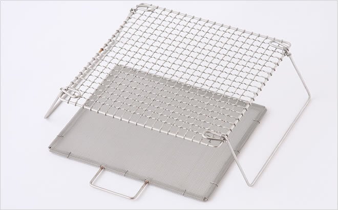目の細かい「焼網受」がガスの直火を和らげ熱をまんべんなく広げます。外はカリッと中はふんわりに、網焼きならではの焼き上がりです。パン・野菜・お餅・干物などに最適です。足は折りたたみ式でコンパクトに収納でき、お手入れは水でザブザブ、たわしでゴシゴシ洗えて便利です。